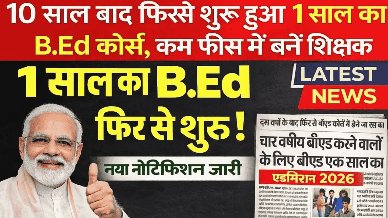1 Year B.Ed Course 2026: लंबे इंतजार के बाद फिर शुरू हुआ 1 साल का B.Ed कोर्स, जानें पूरी जानकारी