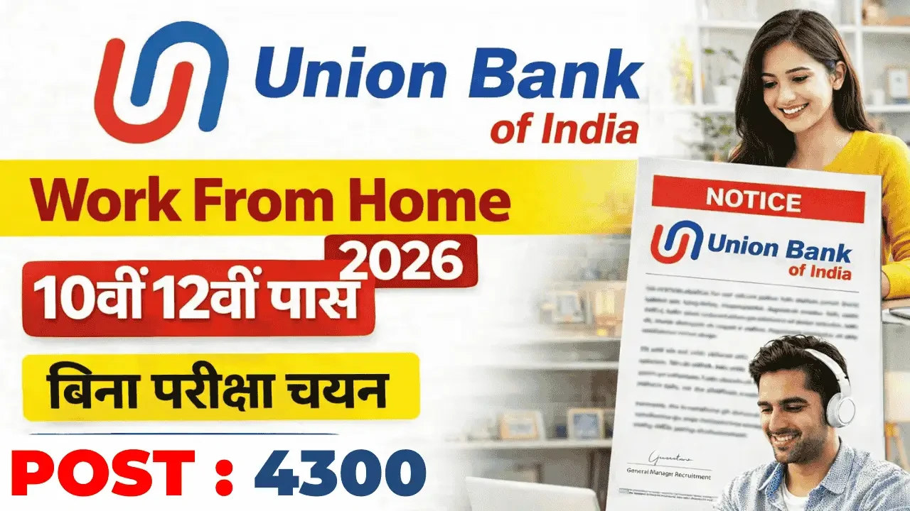 यूनियन बैंक में 10वीं 12वीं पास युवाओं को 4300 पदों पर घर बैठे काम, सैलरी ₹37,000 तक आवेदन प्रक्रिया शीघ्र शुरू : Union Bank of India Work